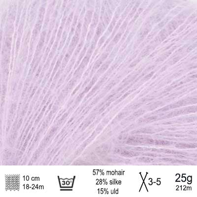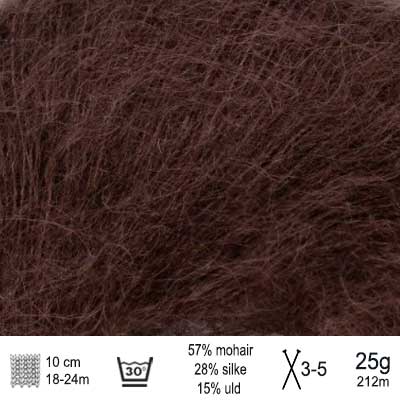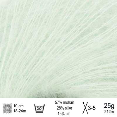 Tynd Silk Mohair er som navnet siger, den tynde variant af Silk Mohair. Det er en blød og luksuriøs blanding af den fineste mohair, uld og silke. Garnet er tyndt og meget drøjt i brug. Strikker du Tynd Silk Mohair med en eller flere tråde får du en let, luftigt og luksuriøst model. Bruger du Tynd Silk Mohair som følgetråd, sammen med andre kvaliteter, vil du få et spændende udtryk og et godt hold i alle modeller.