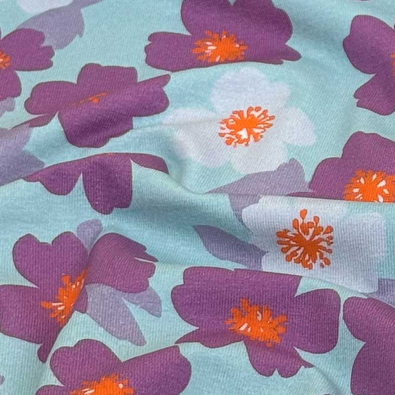 Bomuldsjersey med lilla smørblomster