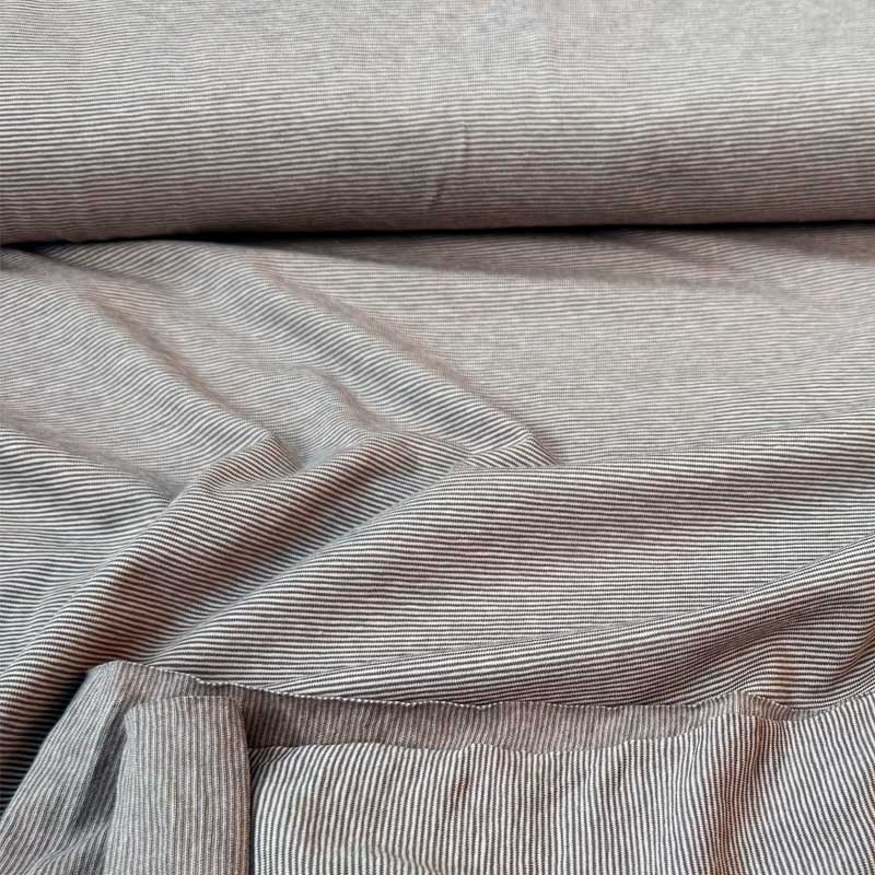 Bomuldsjersey med smalle striber i beige. En dejlig blød OEKO-TEX kvalitet 220 g/m2. God til kjoler, tunika, bluser, nederdele, overdele.