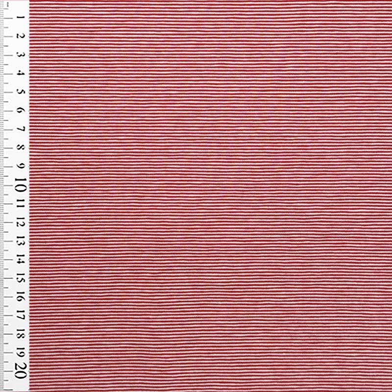 Bomuldsjersey med smalle striber i rød. En dejlig blød OEKO-TEX kvalitet 220 g/m2. God til kjoler, tunika, bluser, nederdele, overdele.