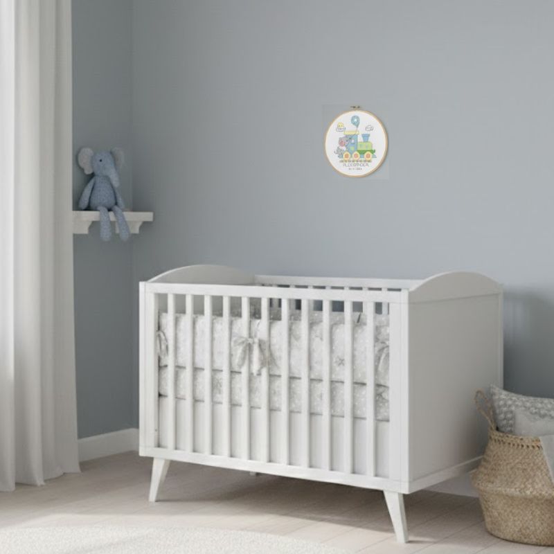 Dette søde broderikit til korssting er den perfekte måde at skabe et mindeværdigt og varigt minde om en nyfødt dreng. Med et populært motiv af en elefant i et tog i friske farver, er broderiet designet som en fødselstavle, hvor du nemt kan brodere barnets personlige data.