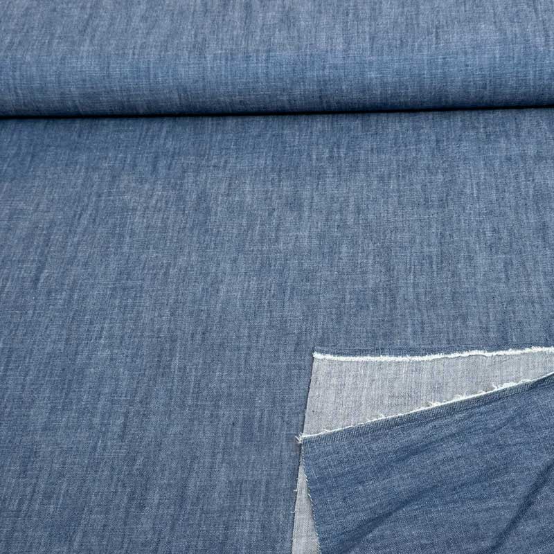 Løsvævet Denim med slub effekt i blå. 100% bomuld (135 gr/kvm). God til bluser, nederdele, kjoler.