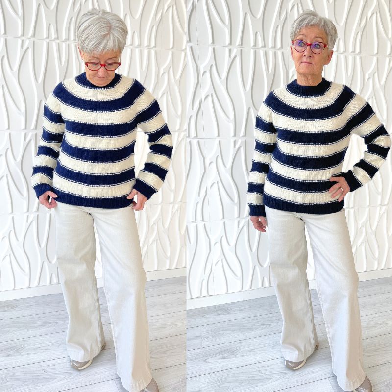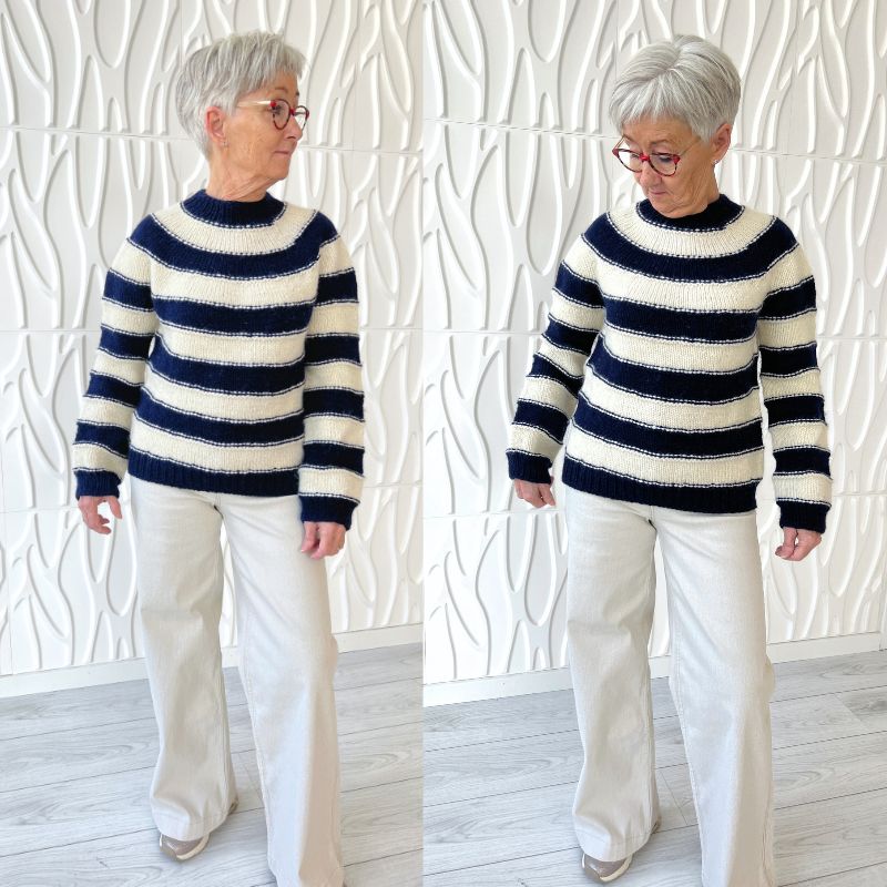 Easy Stripe Jumper fra NORDIC KNIT HOUSE strikkes oppefra og ned i Fritidsgarn fra Sandnes Garn