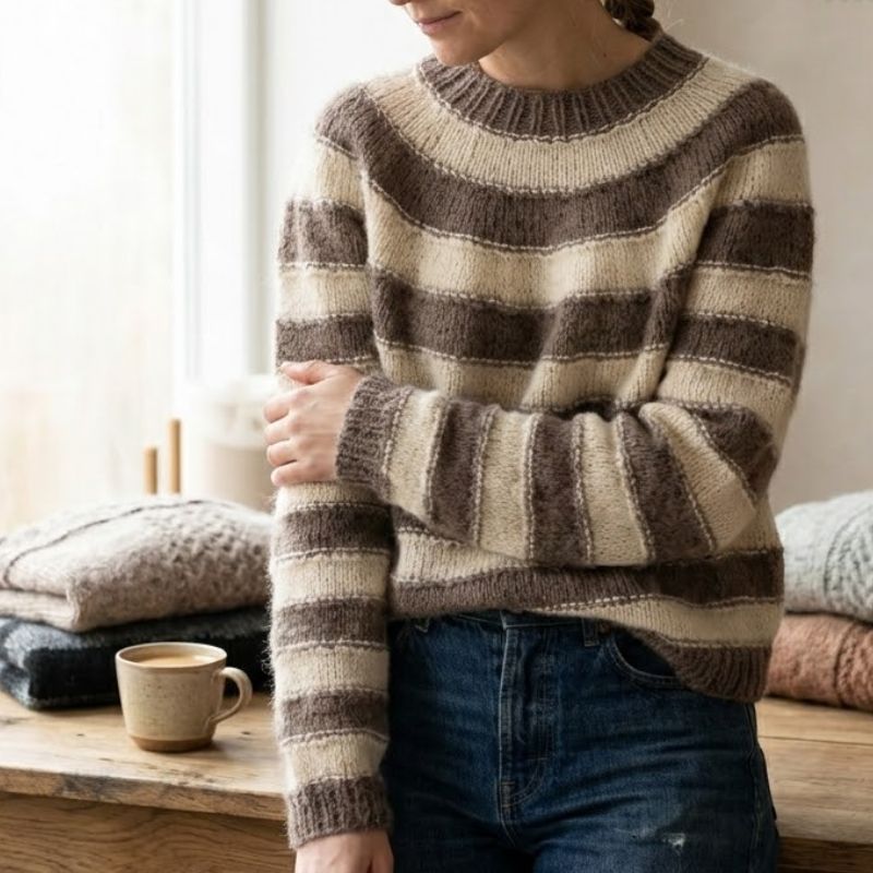 Easy Stripe Jumper fra NORDIC KNIT HOUSE strikkes oppefra og ned i KOS garn fra Sandnes Garn