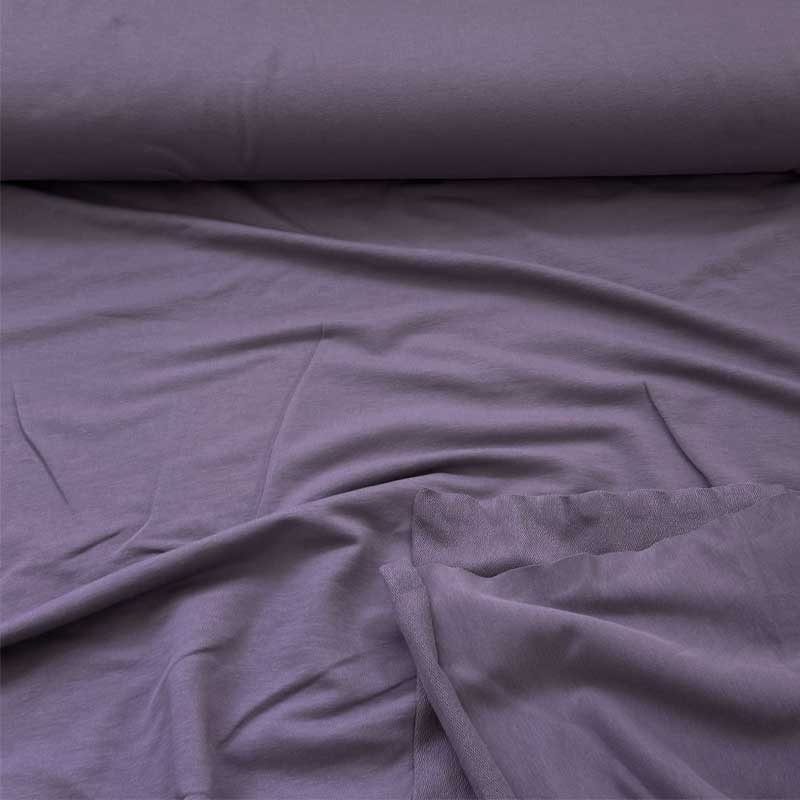 Ensfarvet French Terry i støvet lilla. En dejlig OEKO-TEX kvalitet (230 g/m2). God til kjoler, bluser sweatshirts, hoodies. m.m.
