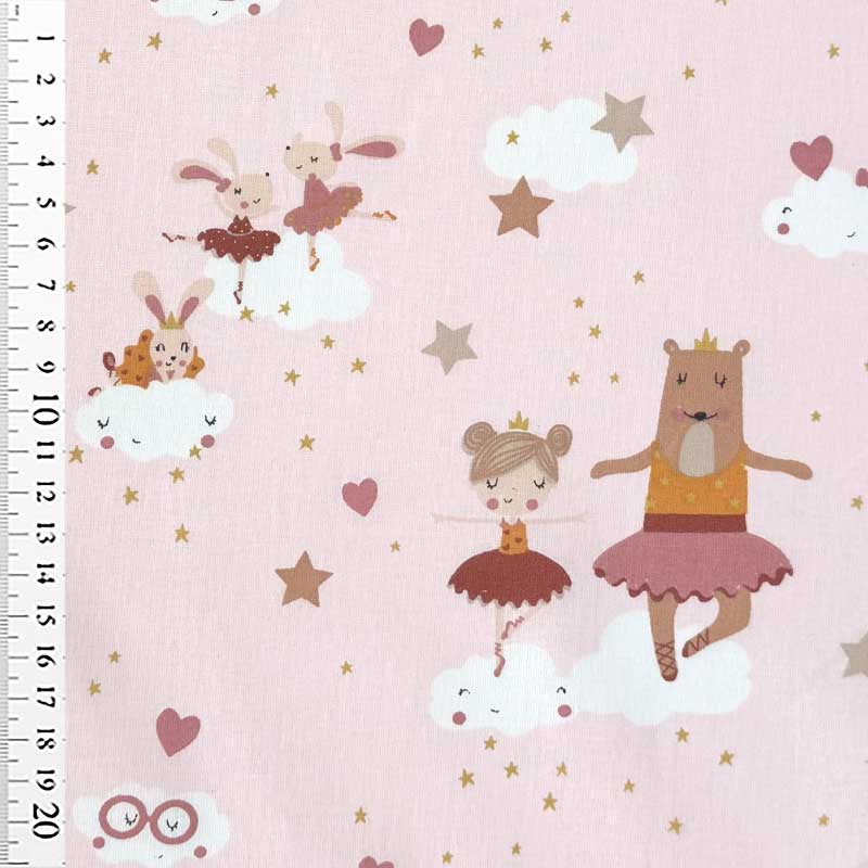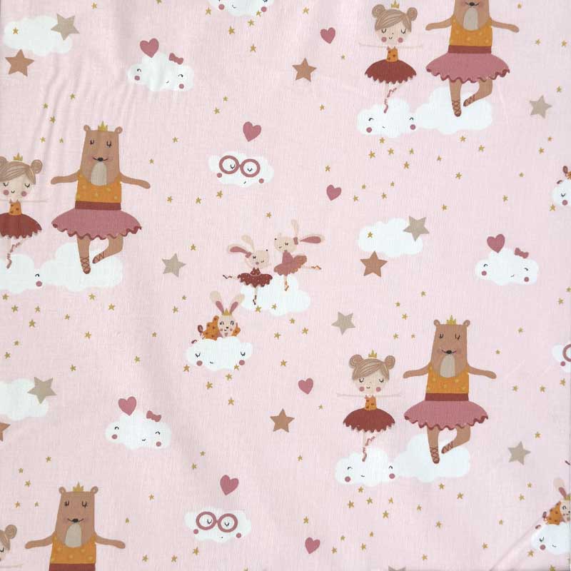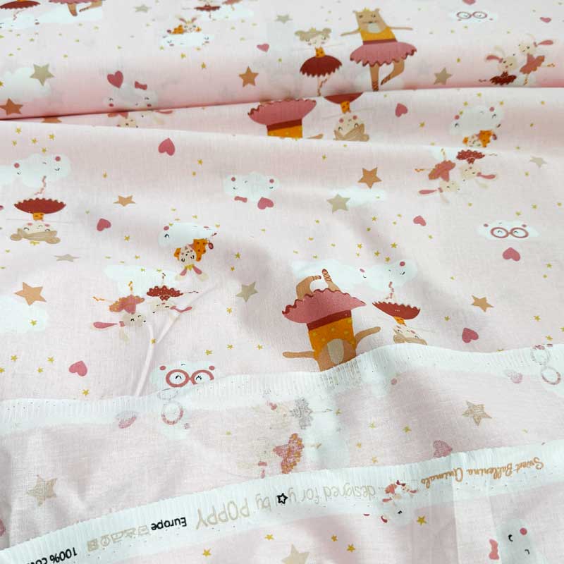 Fast digital bomuld med ballerina på puder rosa bund. En dejlig kvalitet. God til børneuniverset m.m.