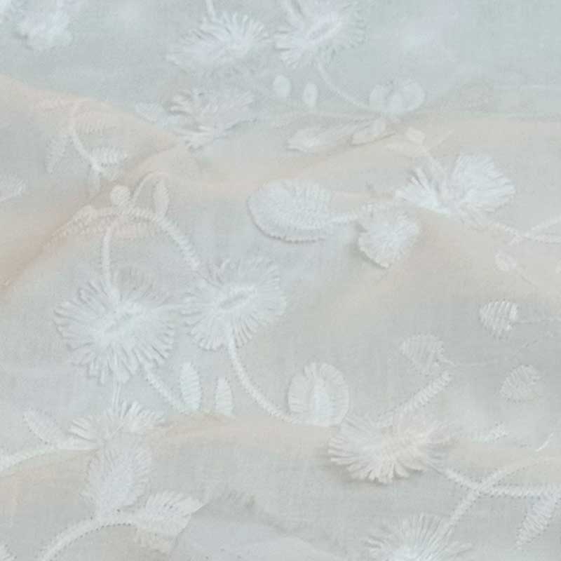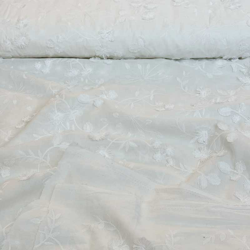 Fast bomuld med løsvævet broderi i off-white. Flot broderi i en lidt tynd og lækker OEKO-TEX kvalitet (135 gr/m2). God til bluser, overdele, kjoler, skjortebluser m.m.
