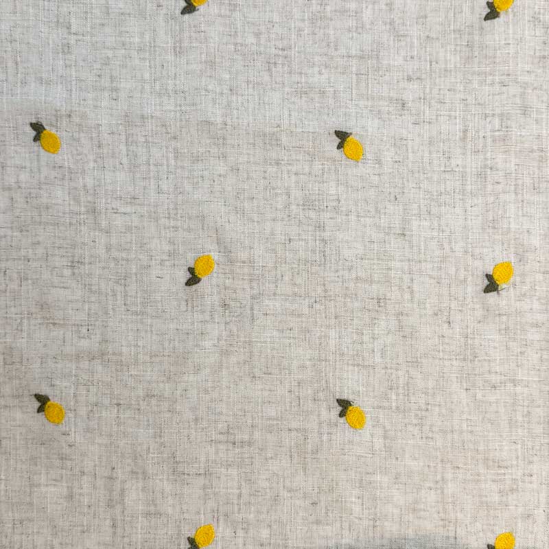 Fast viscose / hør med broderede citroner