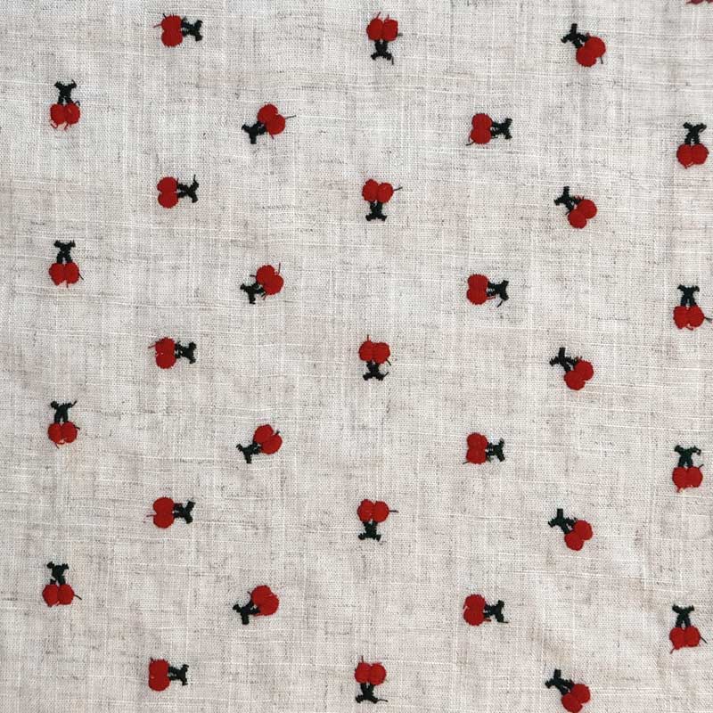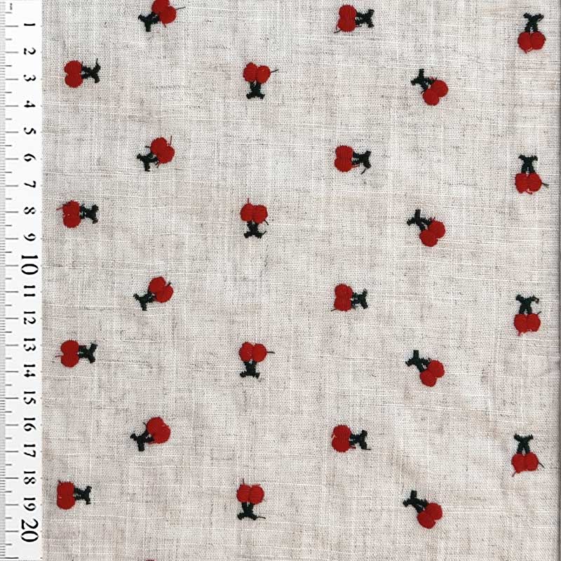 Fast viscose / hør med broderede kirsebær