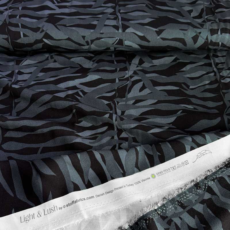 Fast viscose med blade på stilke. En fin og lækker vævet kvalitet (155 gr/m2), som falder flot. God til overdele, kjoler, skjortebluser.