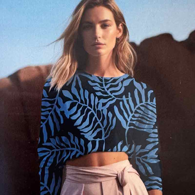 Fast viscose med blåt blad motiv fra Light and Lush