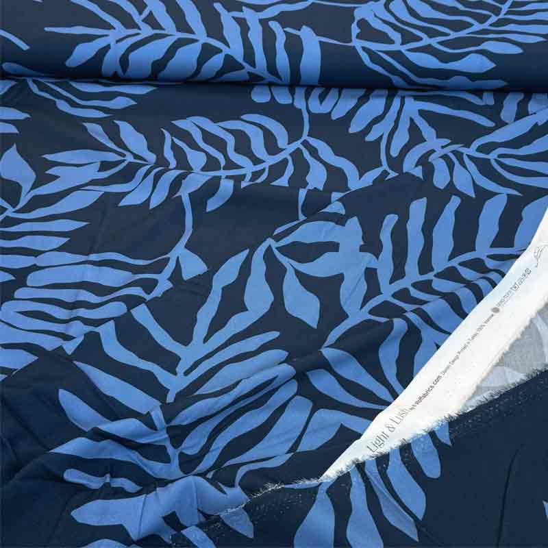 Fast viscose med blåt blad motiv  fra Light and Lush. En fin og lækker kvalitet (150 gr/m2) som falder flot.