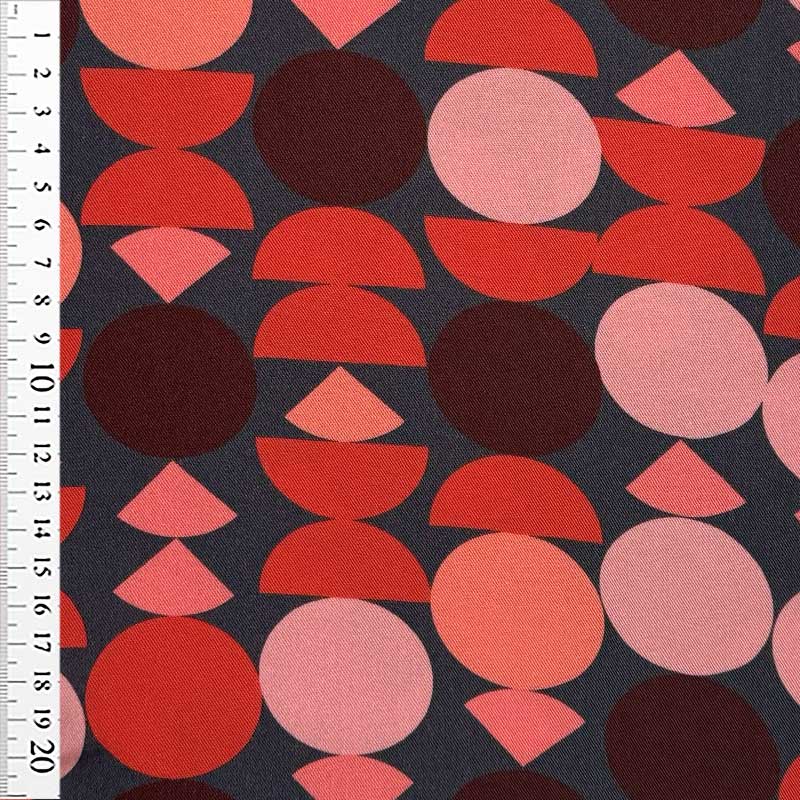 Fast viscose med geometriske figurer på koksgrå bund, fra Light and Lush. En fin og lækker Light and Lush kvalitet, som falder flot.