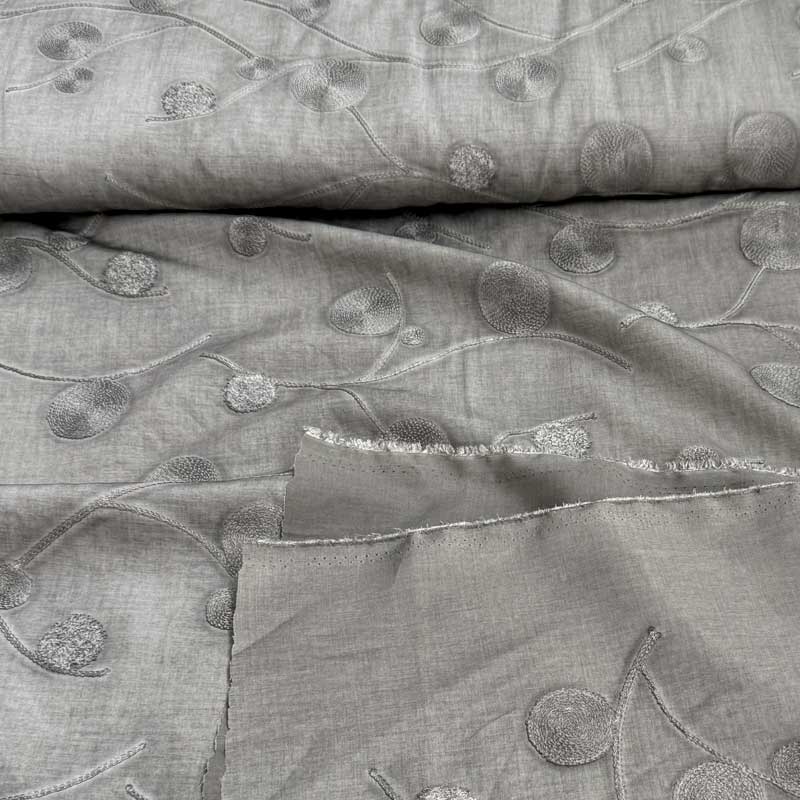 Fast viscose med soltræet på grå bund. En meget fin viscose kvalitet (137 g/m2). God til kjoler, skjorter, bluser og overdele.