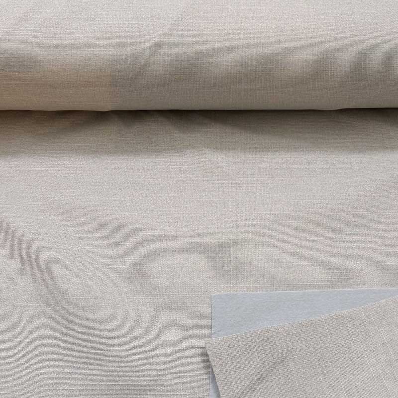 Fastvævet møbelstof i naturfarvet hørlook. Møbelstof i flot hørlook design, med hvid bagside, og i en superlækker og slidestærk kvalitet (50.000 Martindale). God til boligindretning, boligtilbehør, polstring af møbler m.m.