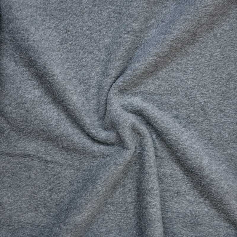 Varm fleece stof i meleret gråblå. Fleece både varmer og isolerer, er let, og tørrer hurtigere, hvilket gør det ideelt til høj aktivitet og fugtige forhold. Denne Fleece er en god sportsfleece på (240 g/m2) til tæpper, cardigans, trøjer, overdele og andet varm beklædning.