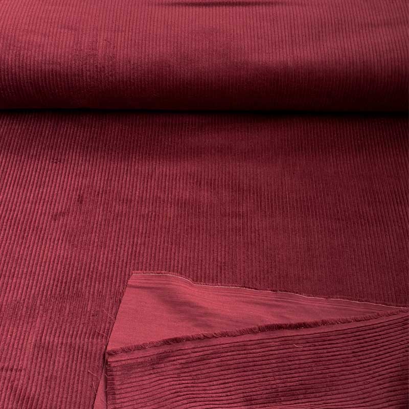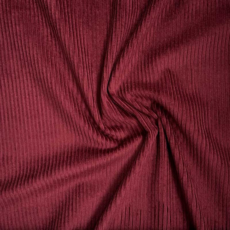 Fløjl på vinrød bund. En dejlig fast fløjlskvalitet (280 g/m2). God til kjoler, nederdele, bukser og habitjakker.