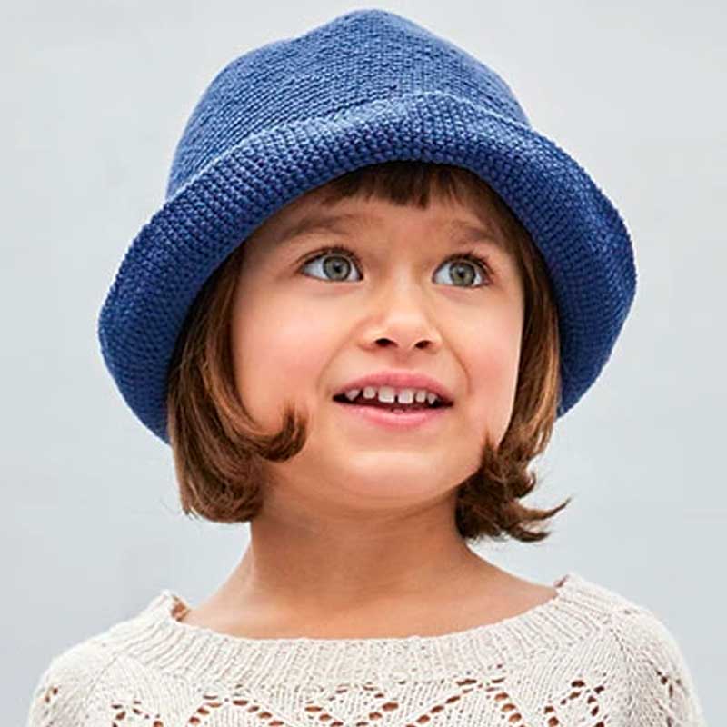 Saras Bøllehat i Mandarin Petit fra Sandnes Garn giver dig muligheden for at hækle en bøllehat fra børn i alderen 9 måneder til 12 år.