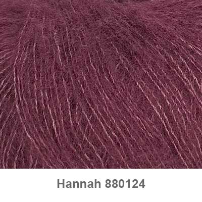 Hannah garn by Permin er et luksus garn, som består af 50% Merino, 30% Silke, 20% Cashmere. Det er et let og meget blødt garn. Hannah garn egner sig rigtig godt til tørklæder, vanter, sweatre eller som følgetråd med et andet garn. Garnet består af en ren silketråd inderst, der gør garnet stærkt og holdbart. Omkring denne silketråd, bliver der spundet en tråd af uld og cashmere, og det slutter med at tråden børstes. Kombinationen giver garnet et blødt og let udtryk. Løbelængde på Hannah garn er 275 m pr. 25 g, og der strikkes på pind 2,5-3 mm