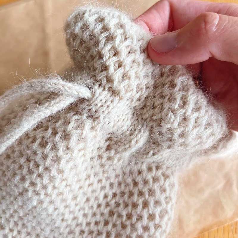 Honey Bucket Bag fra PetiteKnit strikkes i ét stykke fra bunden og op.