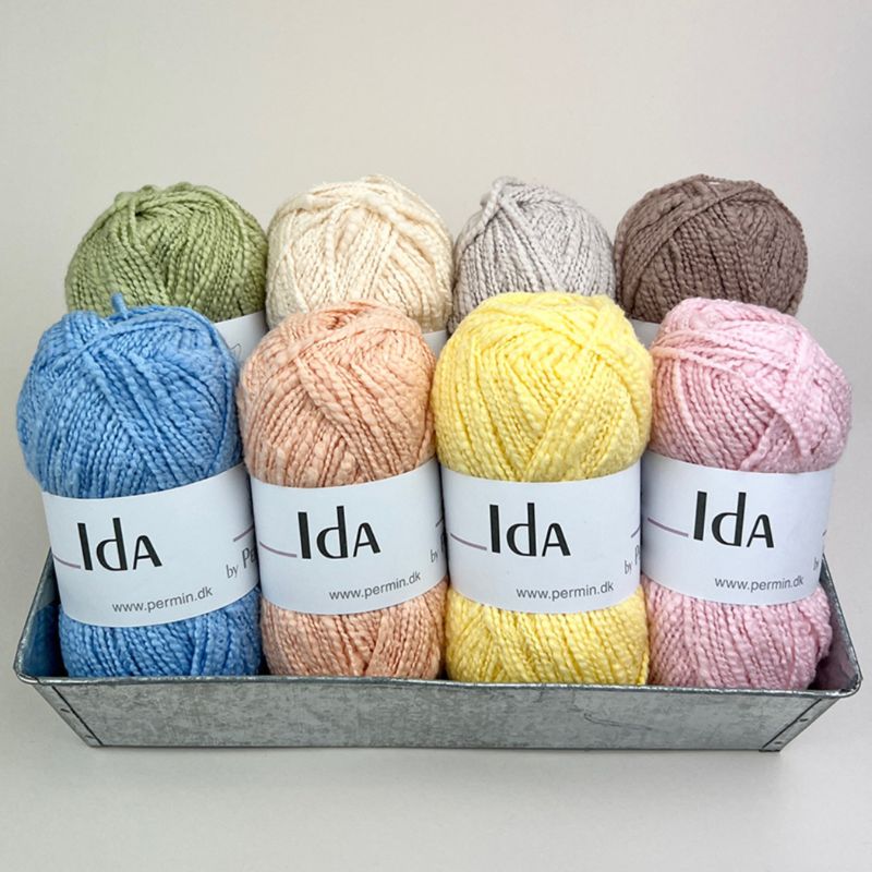 Farvepaletten i Ida består næsten udelukkende af bløde pasteller, som giver garnet et let og tidløst sommerudtryk og gør det oplagt til både dame-, børne- og babymodeller.