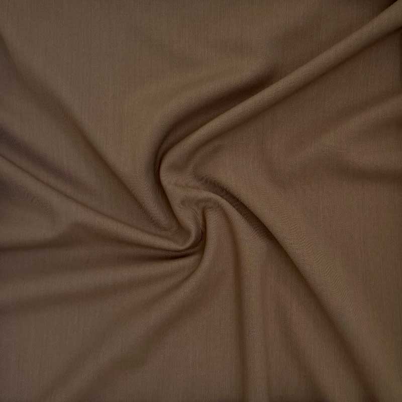 Klassisk Italiensk uld i beigebrun. En lækker uldkvalitet med lidt stræk (350 gr/m2). God til bukser, habitjakker, kjoler, nederdele