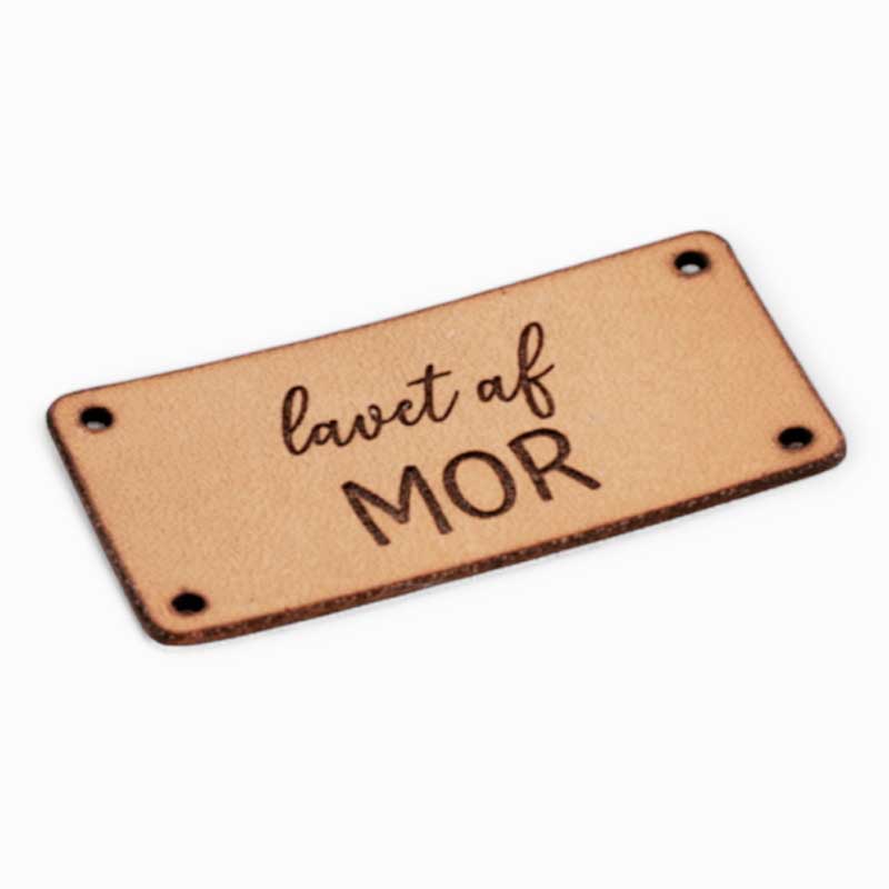 Læderlabel med teksten 'Lavet af Mor' by KABRO. Lækker læderlabel, perfekt som afslutning på strik, hækling eller andet håndarbejde.