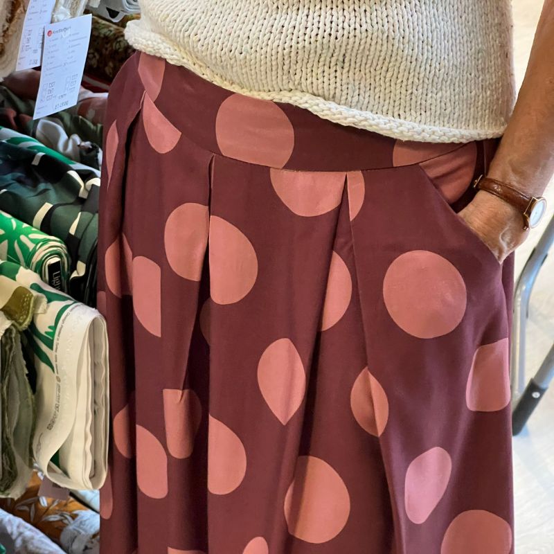 Det er en fin nederdel og ender med at blive fin. Mit ønske vil være, at jeres mønstre fremover beskriver tydeligere hvordan der skal syes. Eks. At der kun er tre læg på henholdsvis. For og bagstykke. Evt. lav nogle videoer der viser hvordan tingene syes.