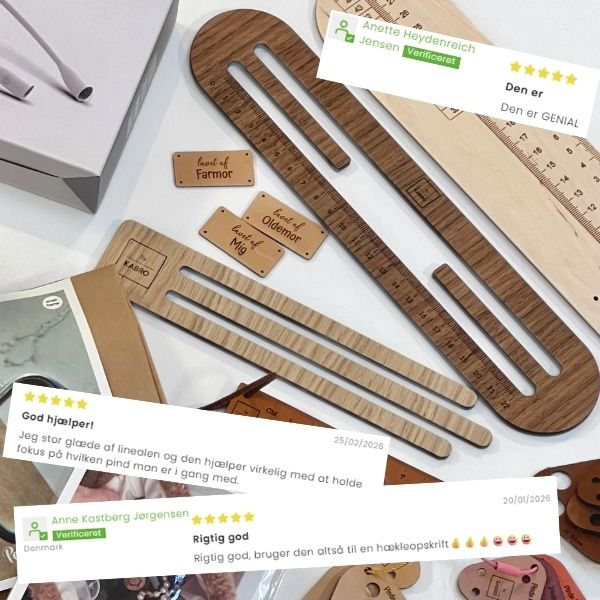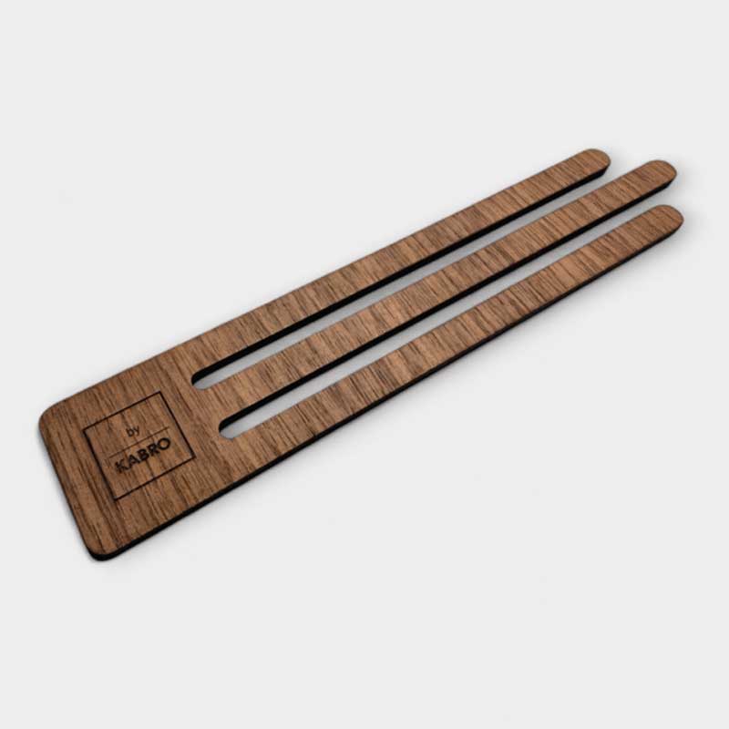 Elegant mønsterskabelon eller Lineal til læsning af strikkeopskrift i egetræsfiner / valnød med hård kerne. Perfekt til at følge opskrifter og holde styr på linjer, mens du arbejder. Du kan ligefrem dufte det gode danske håndværk fra KABRO.