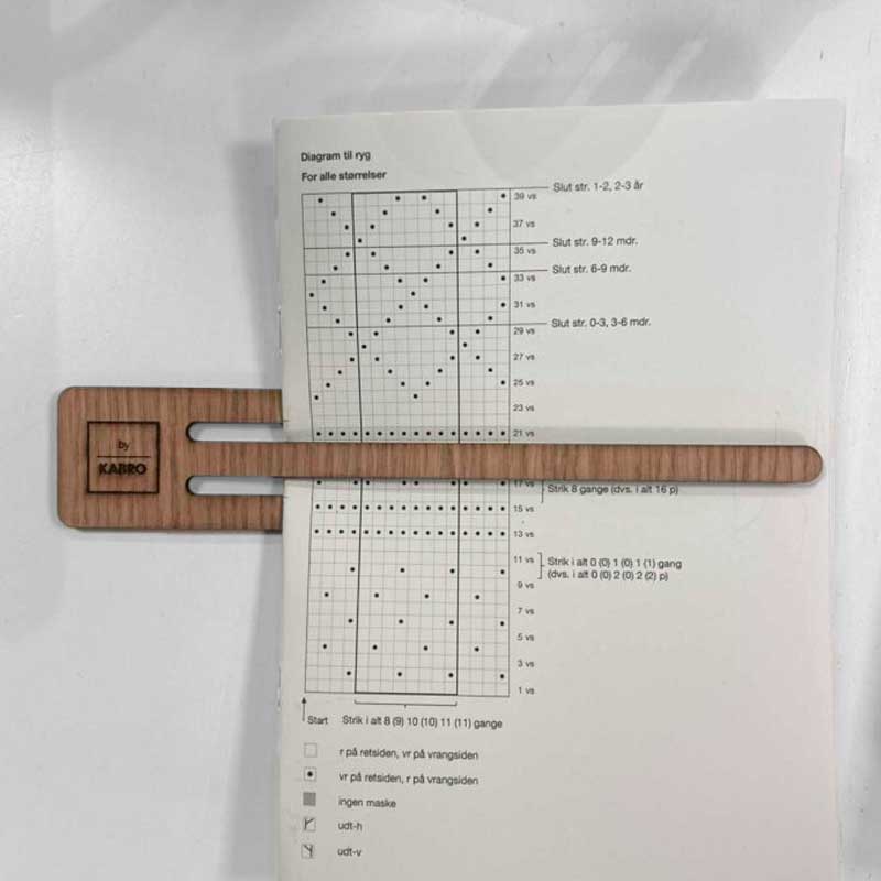 Lineal til læsning af strikkeopskrift A5 by KABRO i lys eg