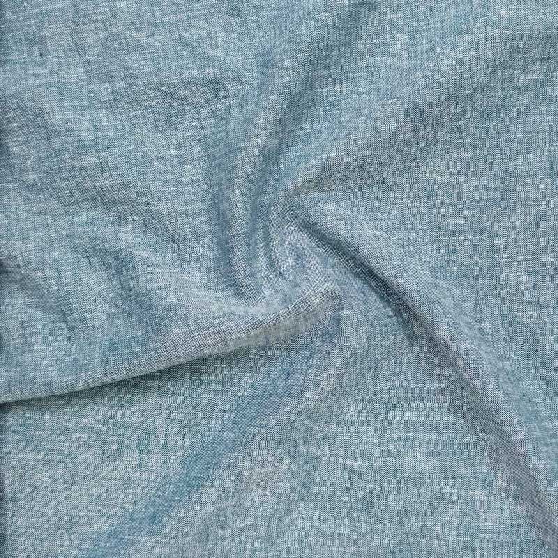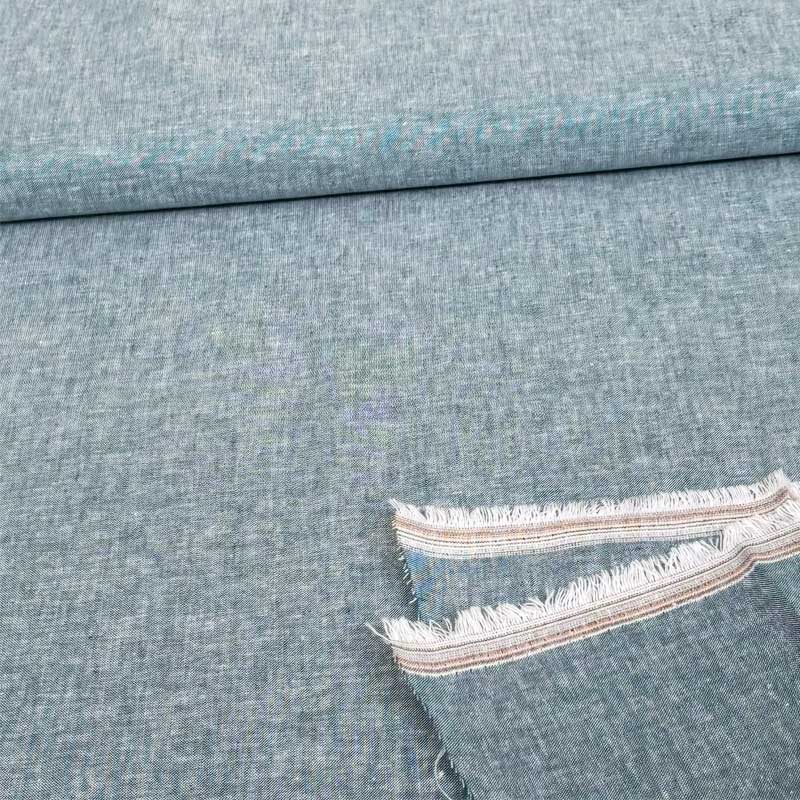 Stoffet er af høj kvalitet i en blanding af bomuld og hør, der kendetegnes ved sin behagelige følelse og naturlige, afbalancerede udseende. Det kombinerer hørens let kornede karakter med bomuldens blødhed og praktiske anvendelighed i hverdagen, hvilket gør det ideelt til varmere vejr, men lige så velegnet til brug året rundt. Det melerede vævede stof med en diskret chambray-effekt har et roligt og moderne look, mens versionen med fine hvide striber tilføjer et strejf af diskret livlighed. Serien afrundes af et diskret sildebensmønster, der giver stoffet et klassisk, tidløst præg. Det vævede stof er behageligt let, bevarer formen og muliggør præcist arbejde. Selv fine detaljer kan udføres, hvilket gør stoffet velegnet til både enkle og mere detaljerede designs.