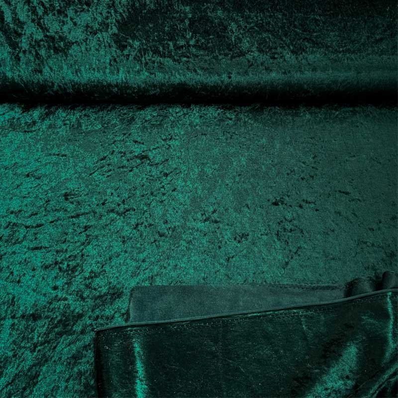 Nervøs velour i flaskegrøn. En blød og elastisk kvalitet med en glansfuld og changerende overflade. Den er især god at bruge til duge, men kan også bruges til fx bluser, kjoler, udklædning og rumudsmykning.
