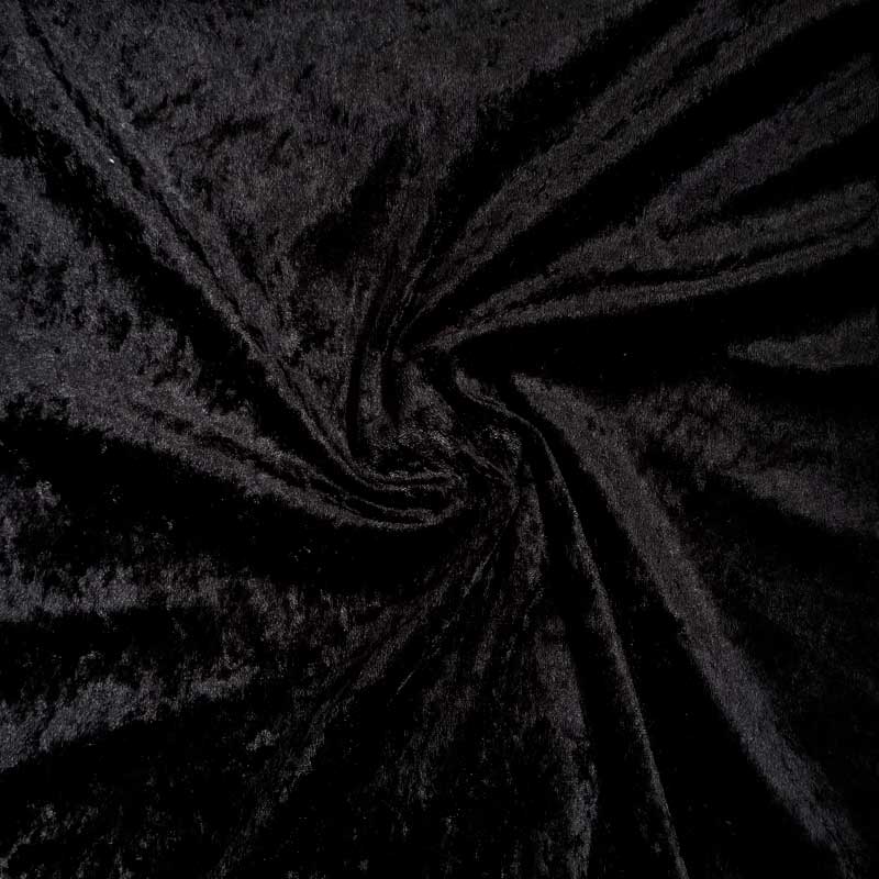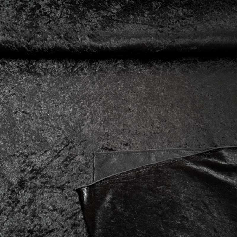 Nervøs velour i sort. En blød og elastisk kvalitet med en glansfuld og changerende overflade. Den er især god at bruge til duge, men kan også bruges til fx bluser, kjoler, udklædning og rumudsmykning.
