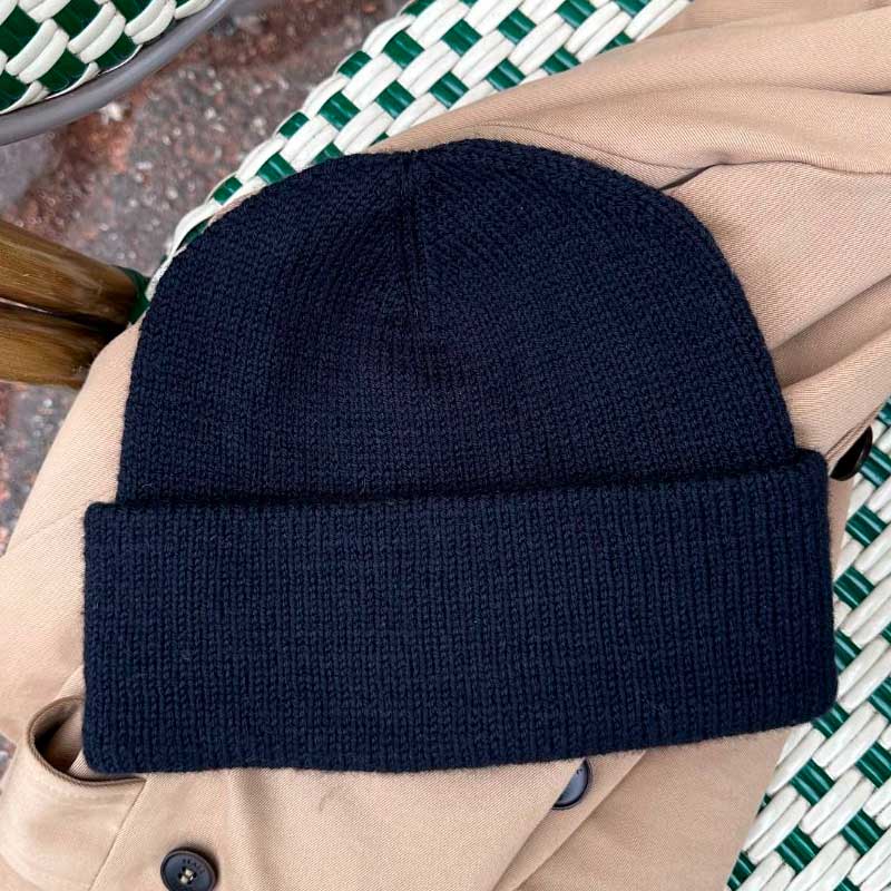 Den blå Oslo Hue er strikket i Double Sunday fra Sandnes Garn i farven Night sky [5591].