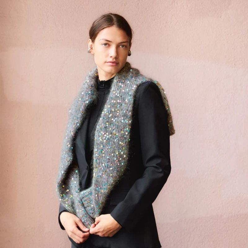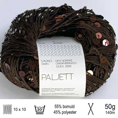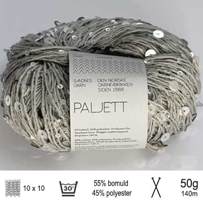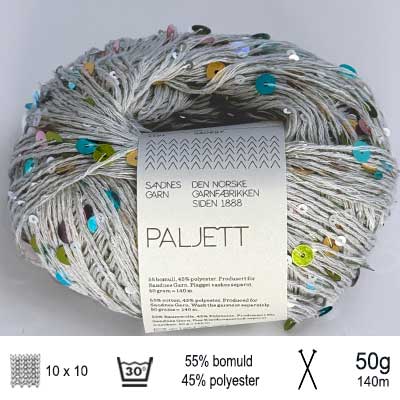 Paillet garn fra Sandnes Garn er et lækkert glimmergarn, med pailletter, til små og store kreative projekter, enten som ledsagertråd eller alene. Paillet garnet indeholder 55% bomuld og 45% polyester og et 50 gram nøgle giver 140 meter glimmer. Lad din kreativitet få frit løb og eksperimenter med udtryk og pindetykkelse - Det er bare sjovt og smukt at se på.