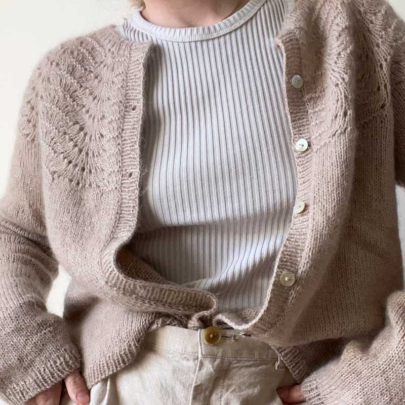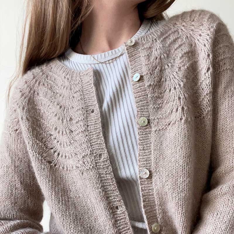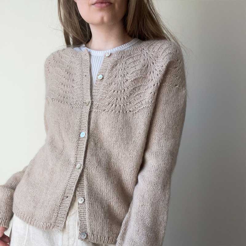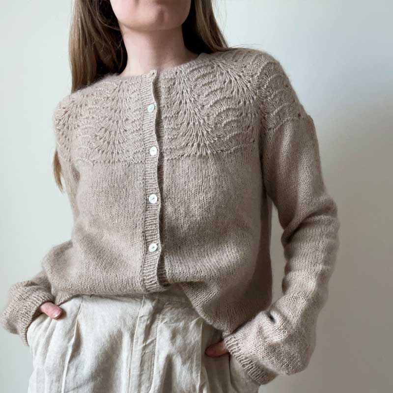 Strikkeopskrift Peacock cardigan fra Le Knit (Lene Holme Samsøe), strikkes oppefra og ned.