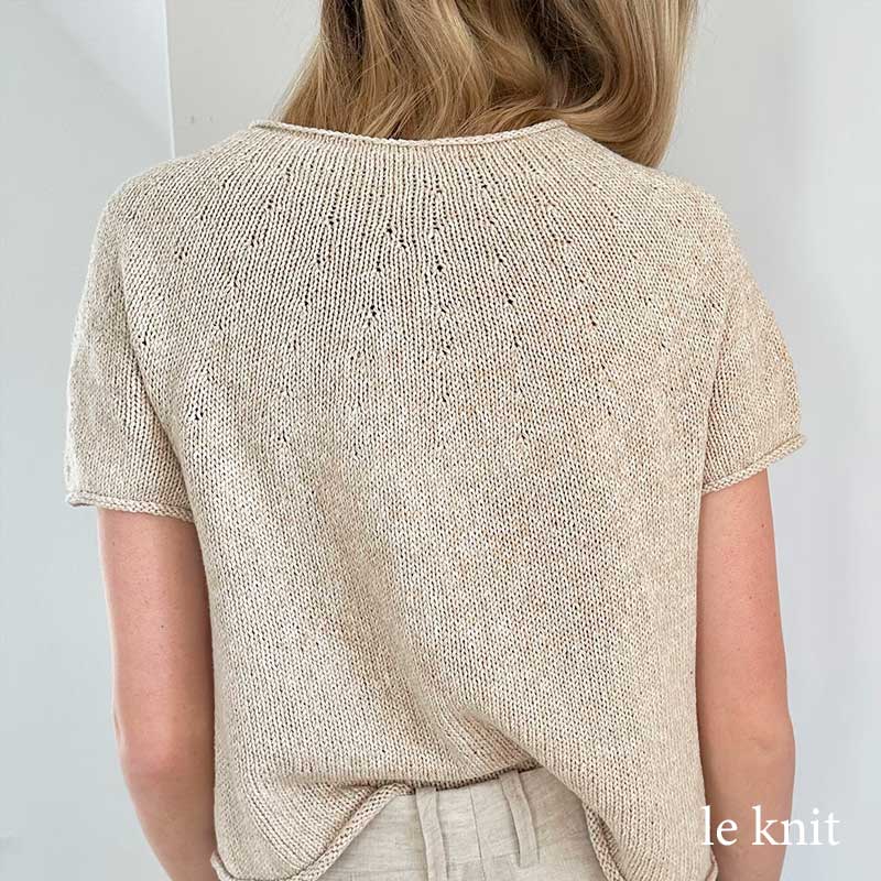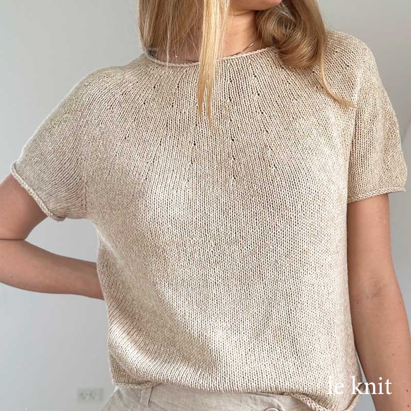 Plain Yoke Tee 20 fra Le Knit strikkes oppefra og ned med forhøjning i nakken. Et godt begynder projekt.