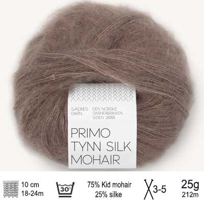 Primo Tynd Silk Mohair er stort set den samme garn som Tynd Silk Mohair - bare uden uld. Det er en blød og luksuriøs blanding af den fineste mohair og silke. Garnet er tyndt og meget drøjt i brug. Strikker du Primo Tynd Silk Mohair med en eller flere tråde får du en let, luftigt og luksuriøst model. Bruger du Primo Tynd Silk Mohair som følgetråd, sammen med andre kvaliteter, vil du få et spændende udtryk og et godt hold i alle modeller.