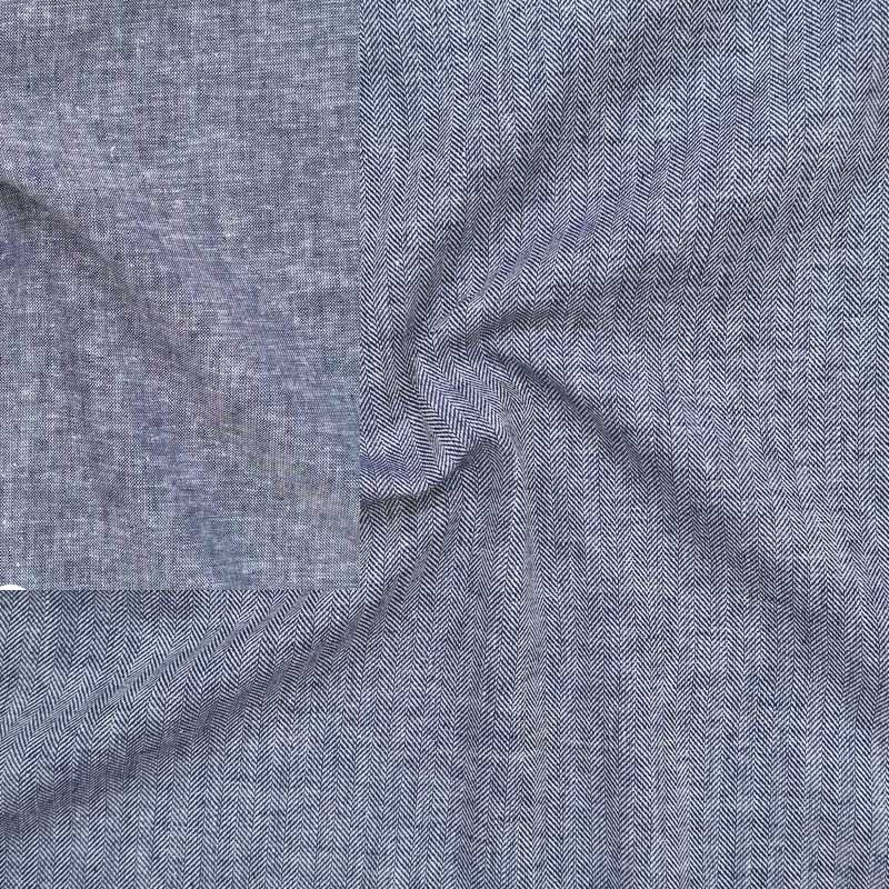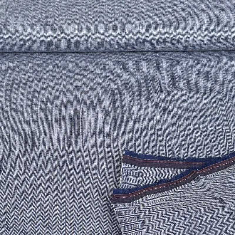 Sildebensvævet hør bomuld stof i blå