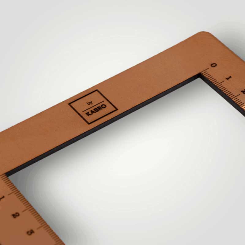 Strikkefasthedsmåler i gyldenbrunt Læder by KABRO. Praktisk og stilren måler i gyldenbrunt kernelæder – perfekt til præcis opmåling af strikkefasthed.