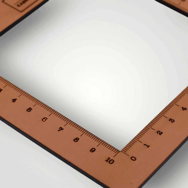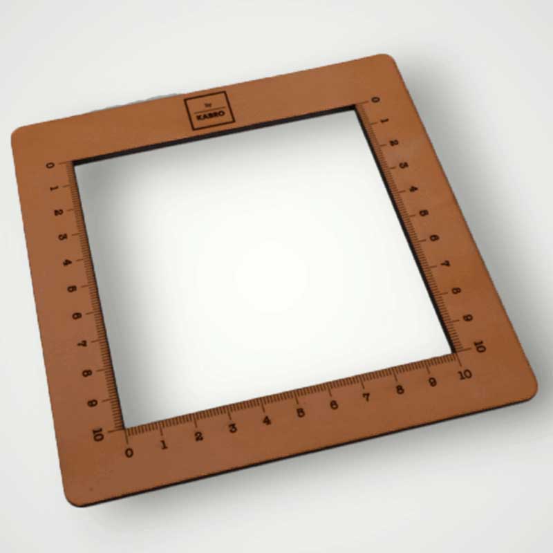 Med tydelig 10 x 10 cm åbning og indgraveret centimeter-opdeling. Et smukt og funktionelt værktøj til dine strikkeprojekter.