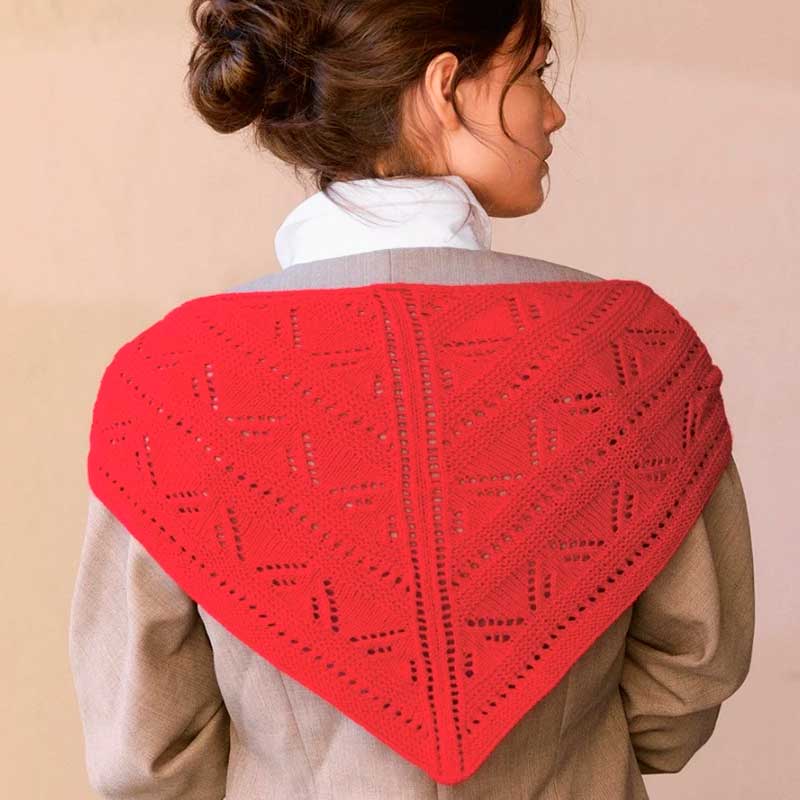 Petra-tørklædet i cashmere er let og luftigt med et smukt hulmønster. Det strikkes nedefra og op, hvilket gør det til et tørklæde, du vil bruge til alt.