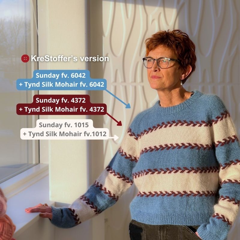 Kittet indeholder Sunday og Tynd Silk Mohair garn + Sandnes opskrift 2510-5 i fysisk papirudgave.