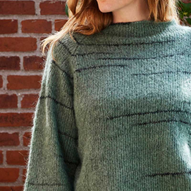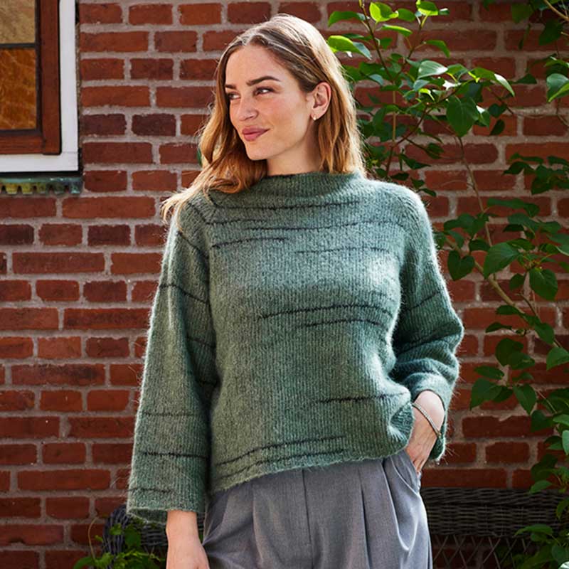 På billedet ses den strikket i fv. 11 Salvie/mørkegrøn