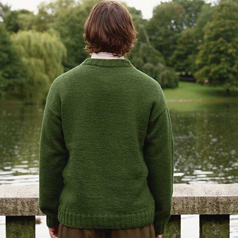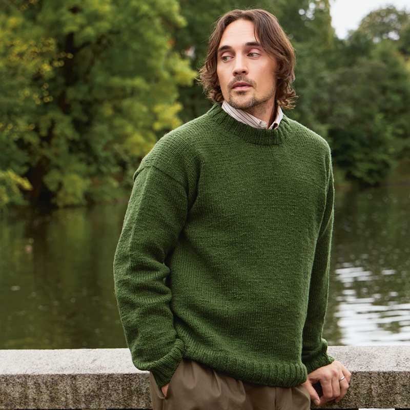 Damian Sweater Man strikkes oppefra og ned i Atlas. En klassisk og tidløs herregenser med afslappet pasform og rene linjer. Sweateren strikkes ovenfra og ned. Først slås masker op til bagstykket, som strikkes frem og tilbage med omvendte pinde. Derefter strikkes masker langs hver skulder til forstykket. Efter ærmerne strikkes kroppen rundt i hel længde. Maskerne rundt