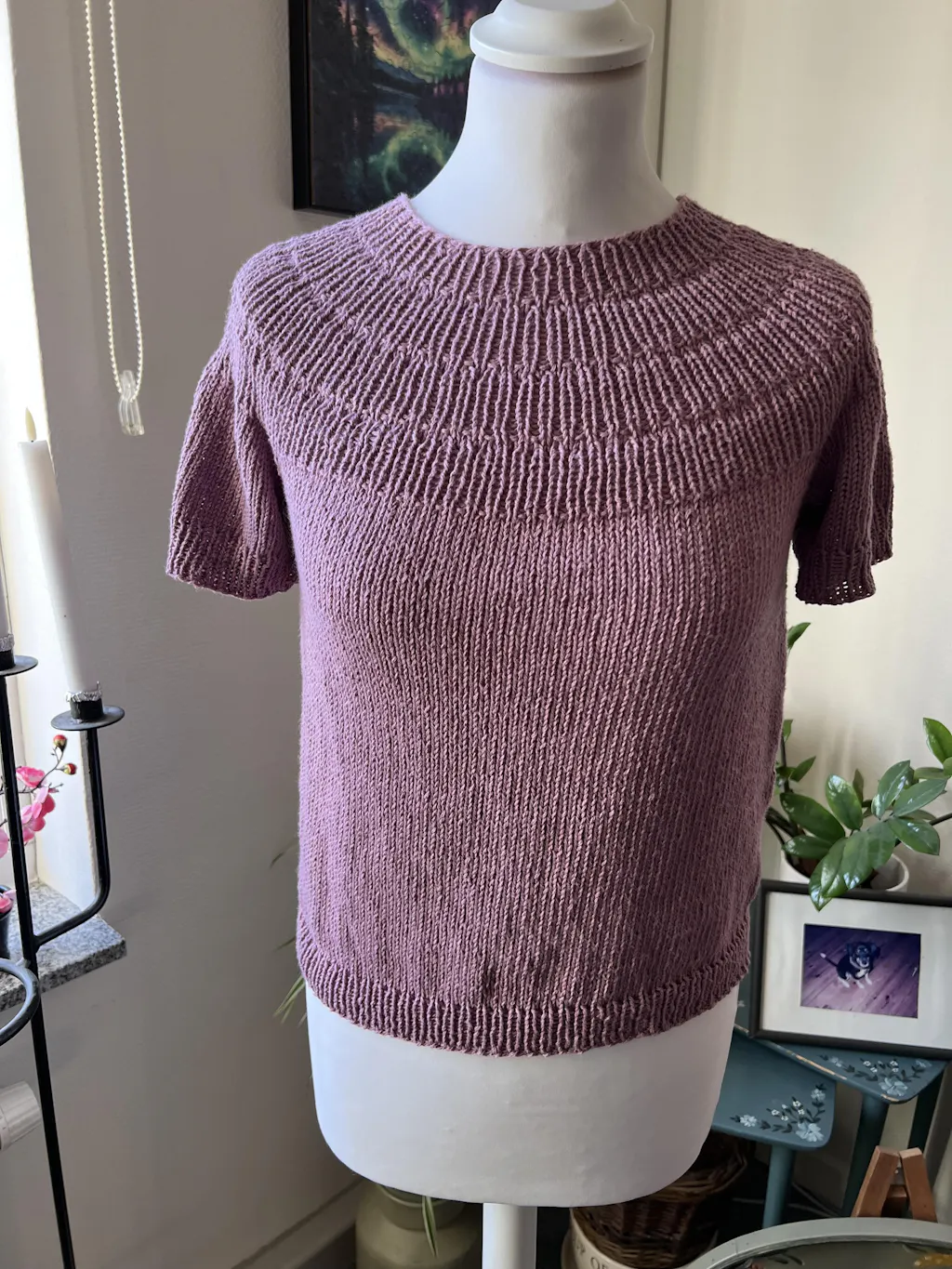 Vi har selv strikket den i farve 4372 Dyb Burgunder, som du ser på billederne.