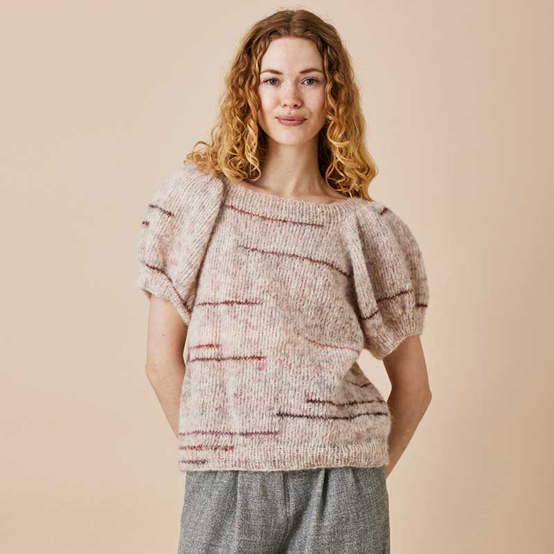 Strikkekit Raglan T-shirt med pufærmer i Nellie garn