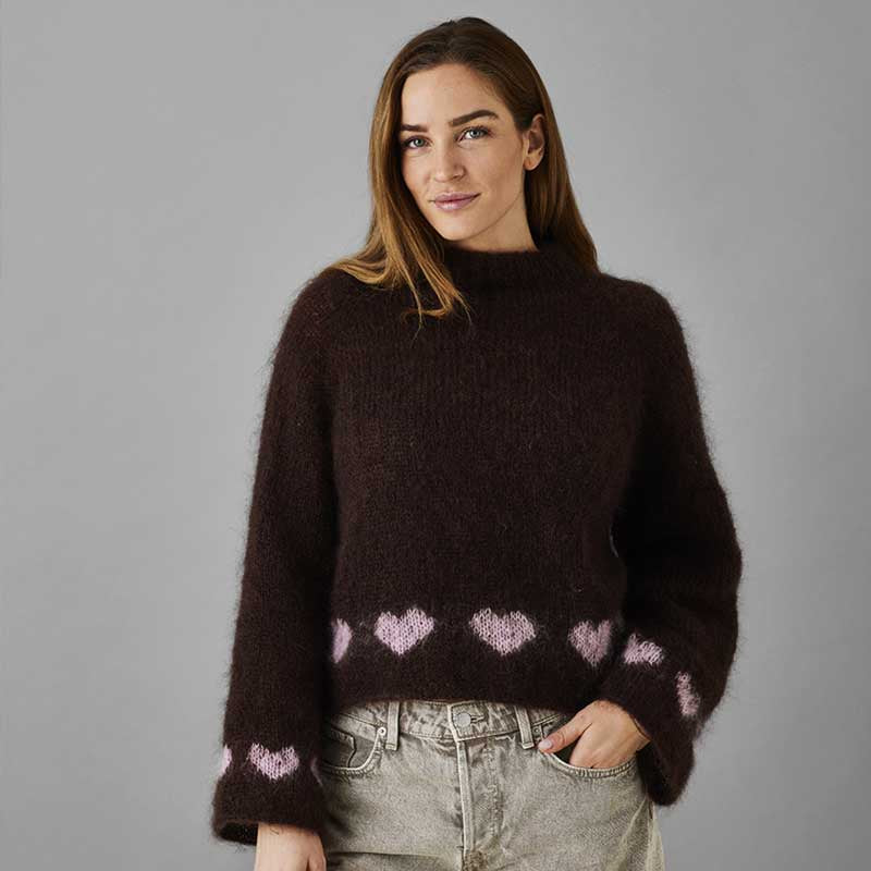 Strikkekit Raglansweater med hjerter 8932112 i Bella garn