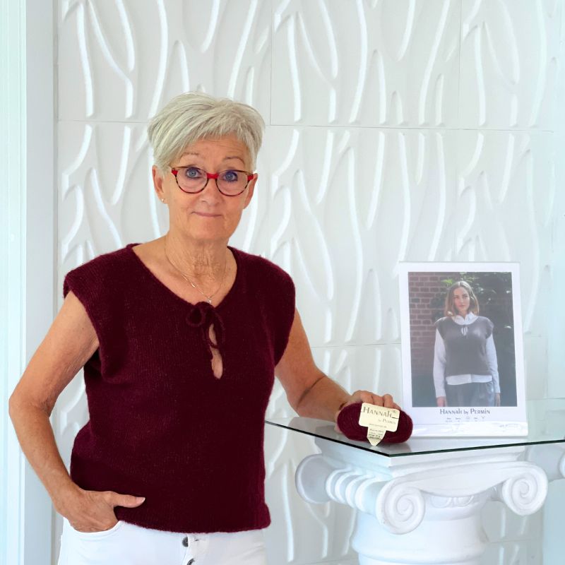Kittet indeholder Hannah garn + strikkeopskrift nr. 890128 fra Permin.