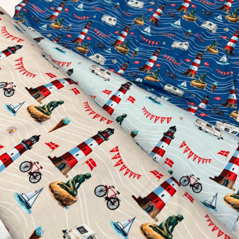 Denne sypakke indeholder snitmønster Line2Line M800 + digital bomuldsjersey med danske feriemotiver